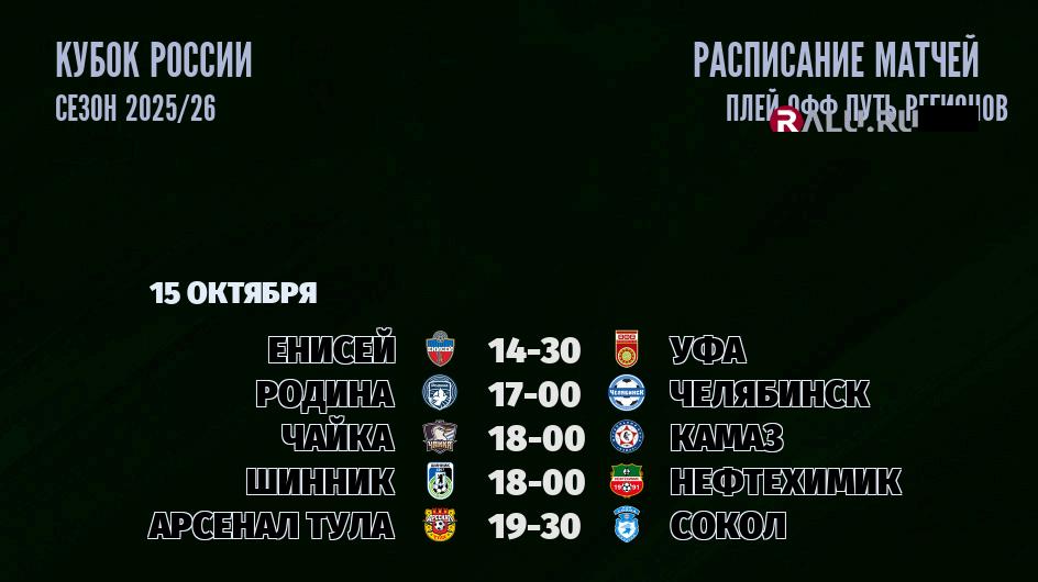 14 октября 2025 года матчи Кубок России не запланированы
