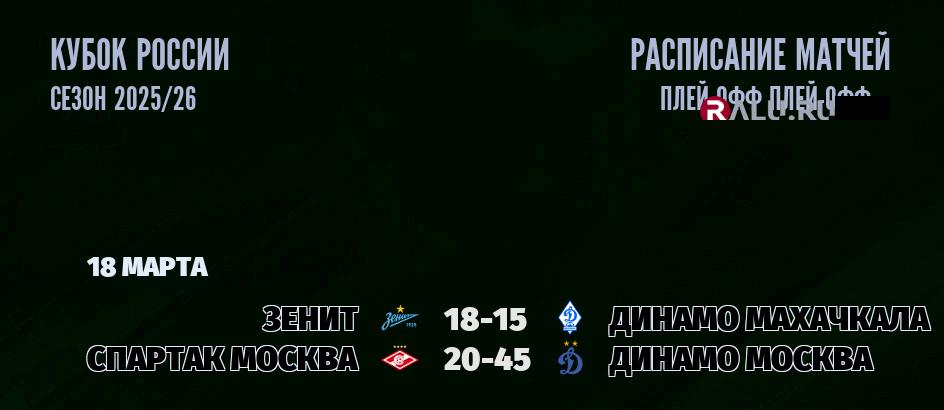 Матчи Кубка России 18 марта 2026
