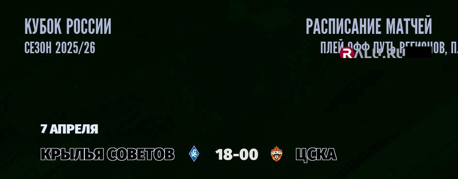 7 апреля 2026 года состоится одна игра в рамках Кубка России