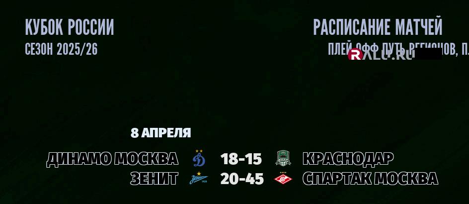 Матчи Кубка России 8 апреля 2026