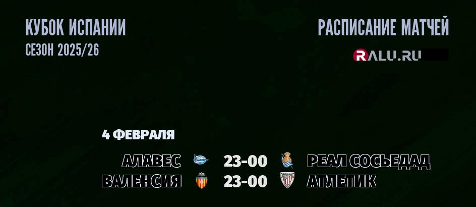 4 февраля 2026 года пройдут две встречи в рамках Кубка Испании