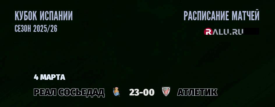 В 23-00 «Реал Сосьедад» на домашнем поле принимает команду «Атлетик». В прошлой встрече между командой Атлетик и командой Реал Сосьедад, которая состоялась 11 февраля 2026 года - победу со счетом 1:0 одержала команда Реал Сосьедад. В турнирной таблице Кубка Испании Реал Сосьедад занимает 1-е место, а Атлетик занимает 1-е место .