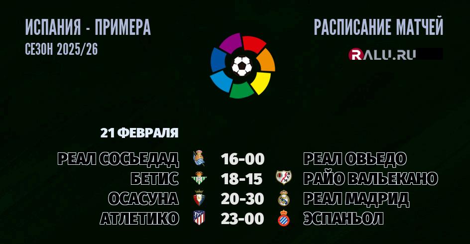 21 февраля 2026 года состоятся четыре матча в рамках чемпионата Испании