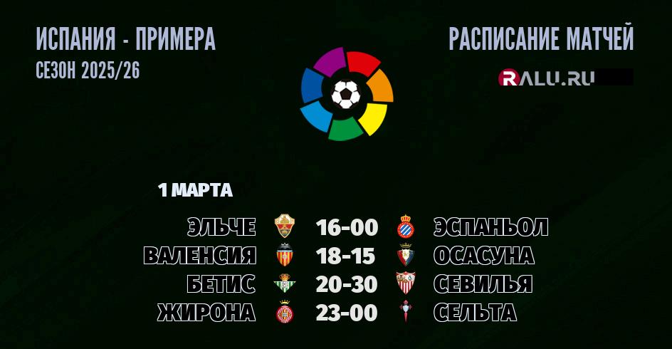 1 марта 2026 года состоятся четыре матча в рамках чемпионата Испании