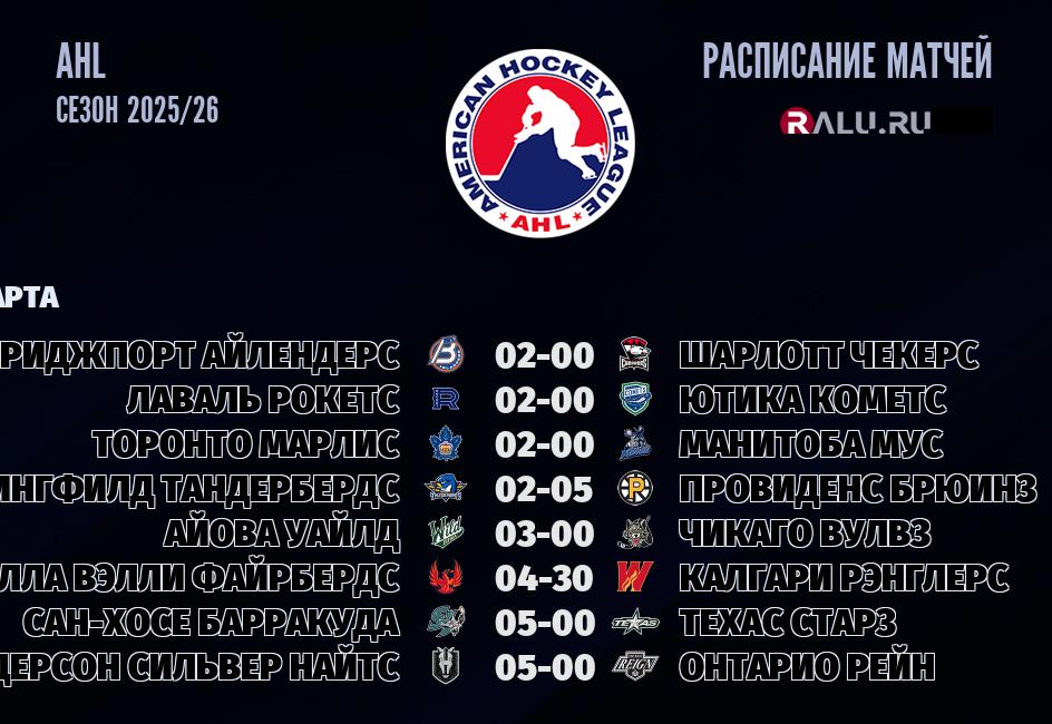 26 марта 2026 года в прямом эфире восемь матчей в рамках чемпионата AHL