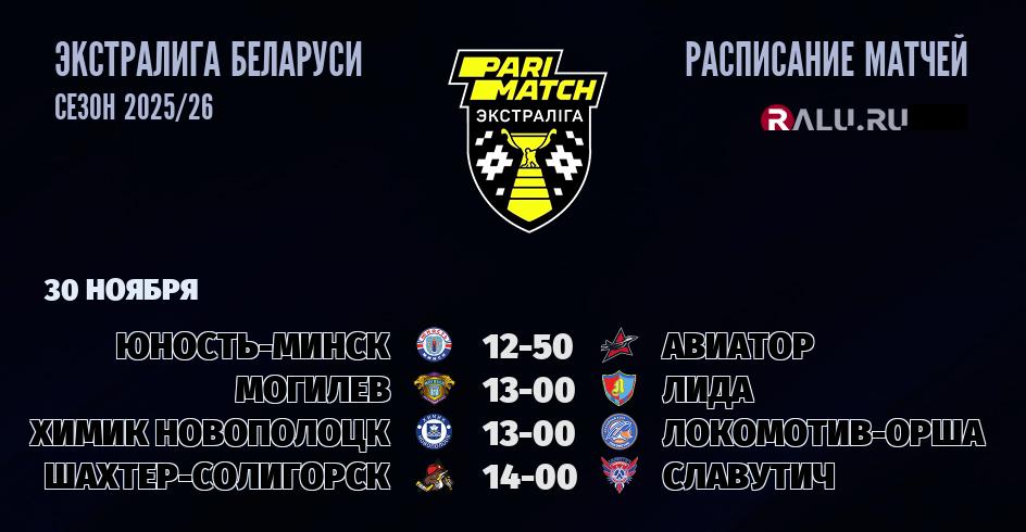 30 ноября 2025 года состоятся четыре матча в рамках Экстралиги Беларуси