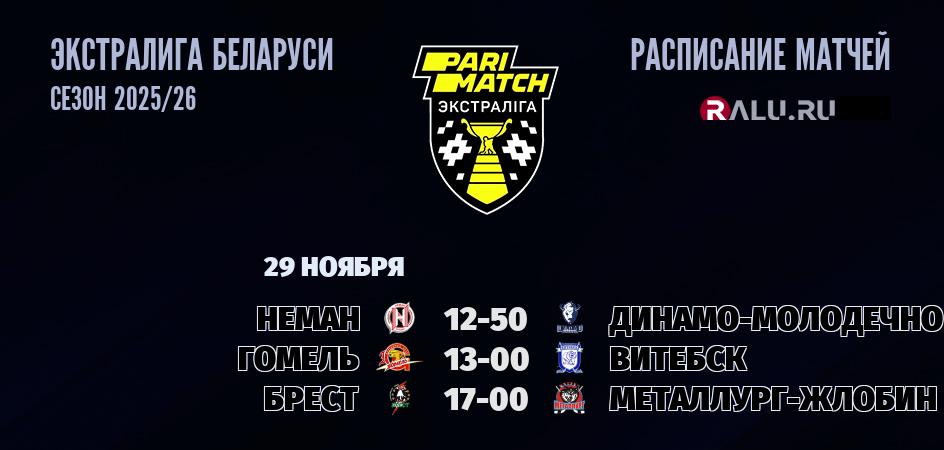29 ноября 2025 года состоятся три матча в рамках Экстралиги Беларуси