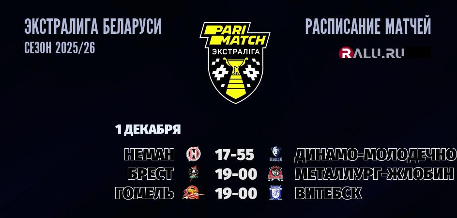 1 декабря 2025 года состоятся три матча в рамках Экстралиги Беларуси