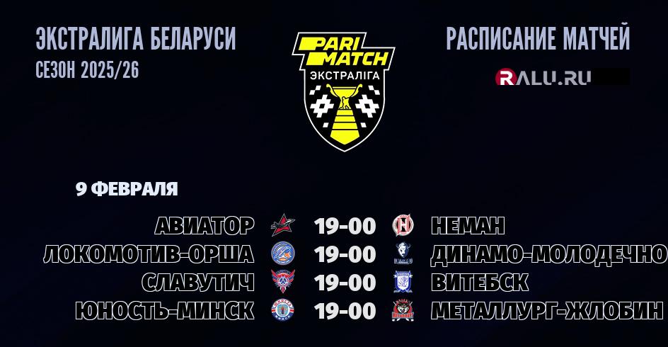 9 февраля 2026 года состоятся четыре матча в рамках Экстралиги Беларуси