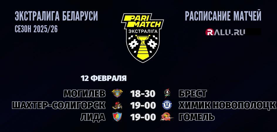 12 февраля 2026 года состоятся три матча в рамках Экстралиги Беларуси