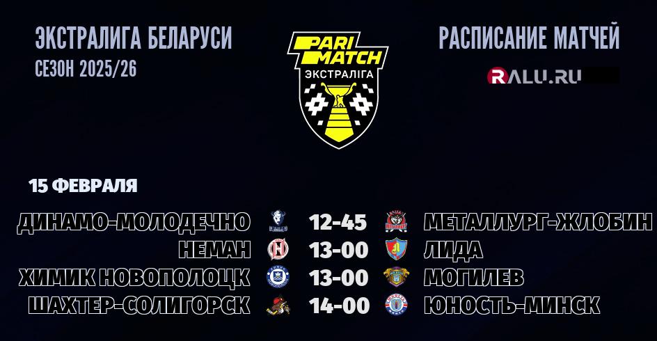 15 февраля 2026 года состоятся четыре матча в рамках Экстралиги Беларуси