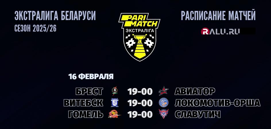16 февраля 2026 года состоятся три матча в рамках Экстралиги Беларуси