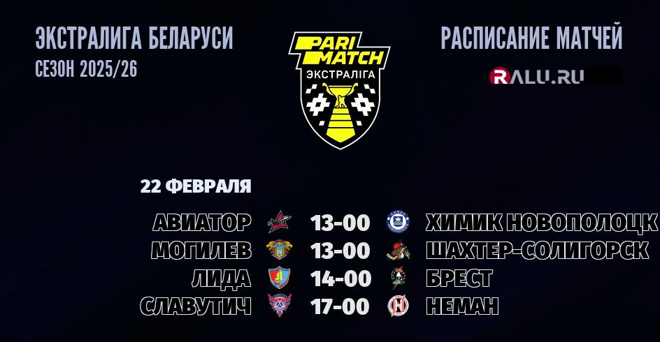 22 февраля 2026 года состоятся четыре матча в рамках Экстралиги Беларуси