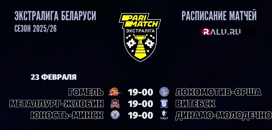23 февраля 2026 года состоятся три матча в рамках Экстралиги Беларуси