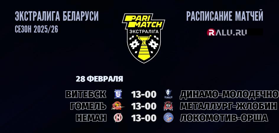 28 февраля 2026 года состоятся три матча в рамках Экстралиги Беларуси