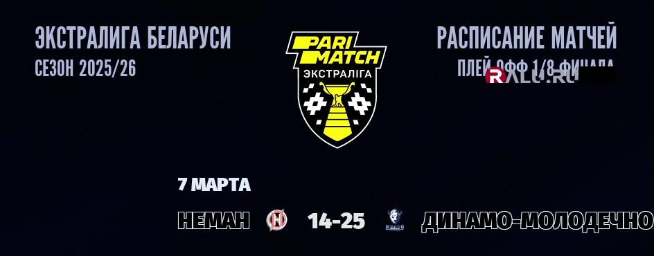 В 14-25 команда «Неман» встретится на своем льду с ХК «Динамо-Молодечно». В прошлой встрече между командой Неман и командой Динамо-Молодечно, которая состоялась 1 декабря 2025 года - победу в основное время со счетом 2:1 одержала команда Неман. На 6 марта в турнирной таблице Экстралиги Беларуси Неман занимает 4-е место, а Динамо-Молодечно занимает 22-е место .