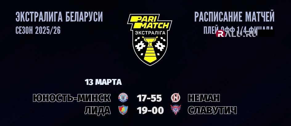 13 марта 2026 года пройдут две встречи в рамках ПЛЕЙ-ОФФ Экстралиги Беларуси