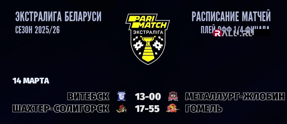 14 марта 2026 года пройдут две встречи в рамках ПЛЕЙ-ОФФ Экстралиги Беларуси