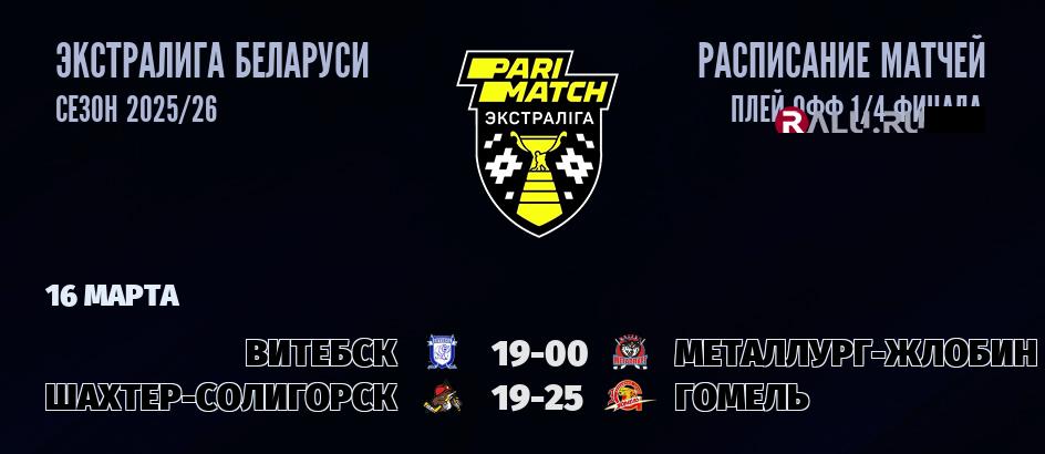 16 марта 2026 года пройдут две встречи в рамках ПЛЕЙ-ОФФ Экстралиги Беларуси