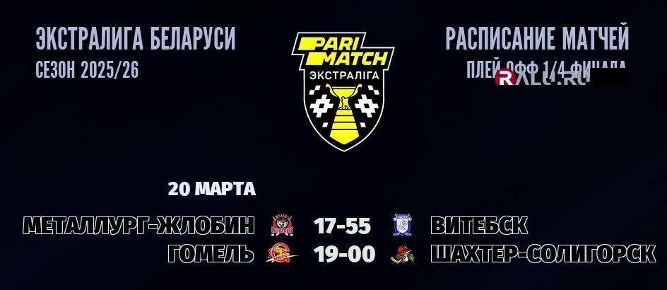 20 марта 2026 года пройдут две встречи в рамках ПЛЕЙ-ОФФ Экстралиги Беларуси