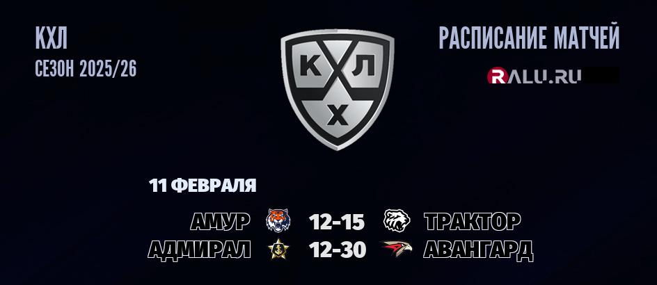 11 февраля 2026 года пройдут две встречи в рамках чемпионата КХЛ