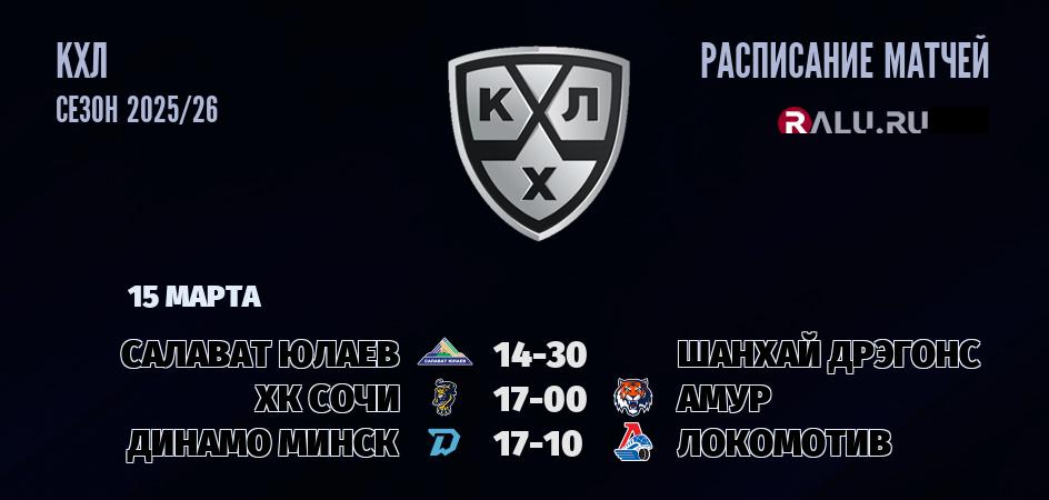 15 марта 2026 года состоятся три матча в рамках чемпионата КХЛ