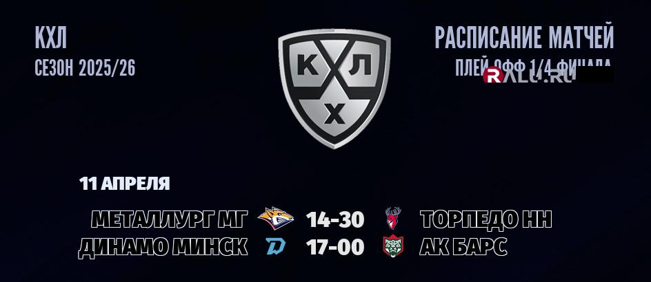 11 апреля 2026 года пройдут две встречи в рамках ПЛЕЙ-ОФФ чемпионата КХЛ
