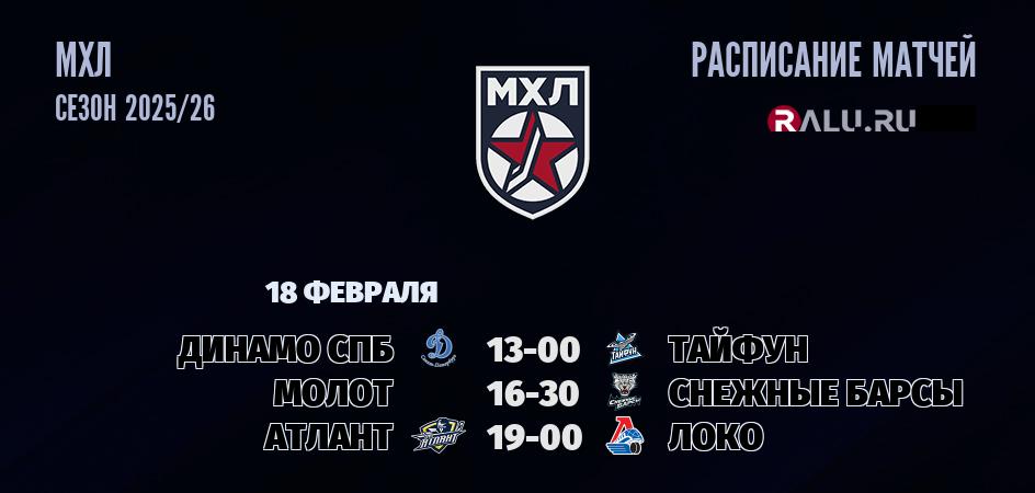 18 февраля 2026 года состоятся три матча в рамках чемпионата МХЛ