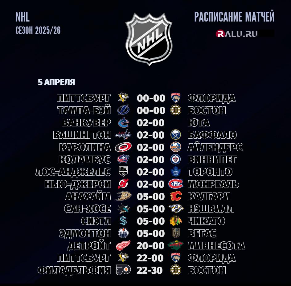 5 апреля 2026 года состоится большой тур - 15 матчей в рамках чемпионата NHL
