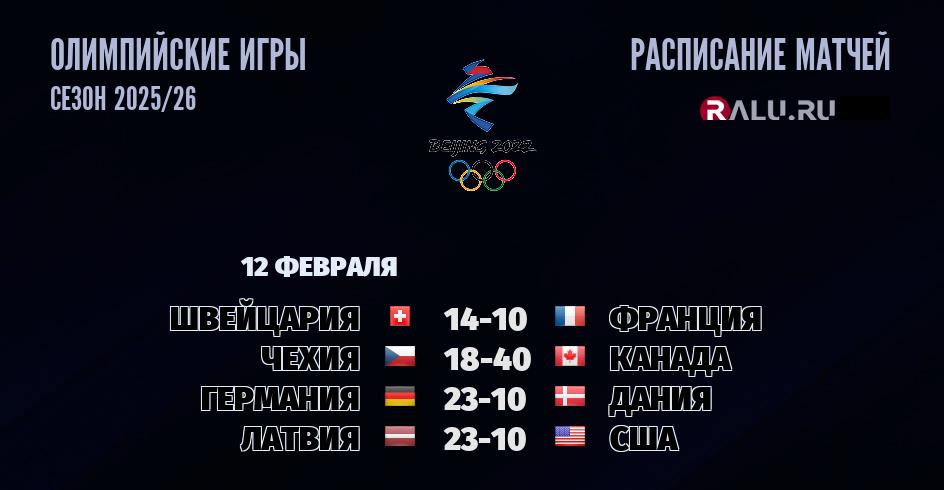 12 февраля 2026 года состоятся четыре матча в рамках Олимпийских игр