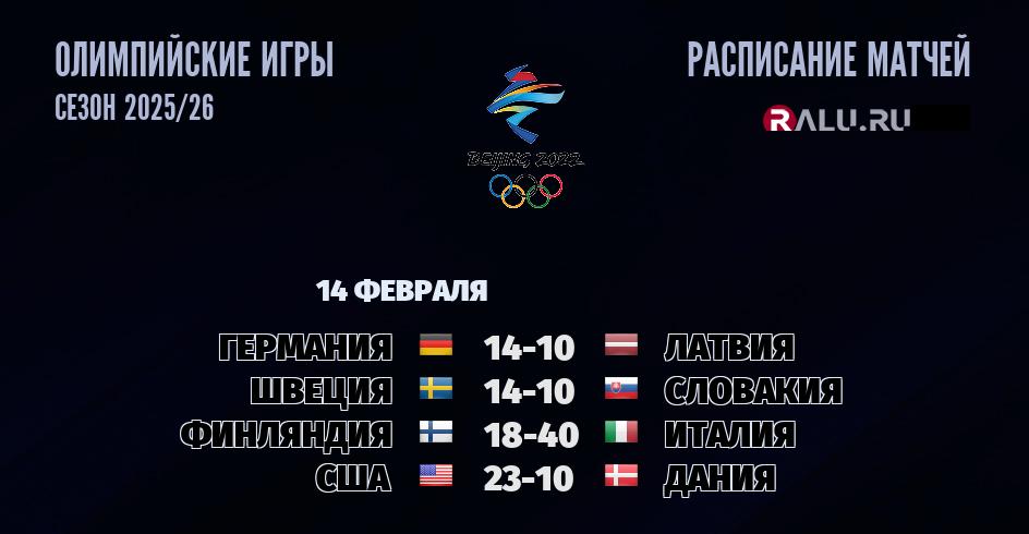 14 февраля 2026 года состоятся четыре матча в рамках Олимпийских игр