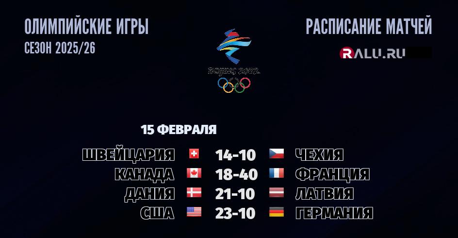15 февраля 2026 года состоятся четыре матча в рамках Олимпийских игр
