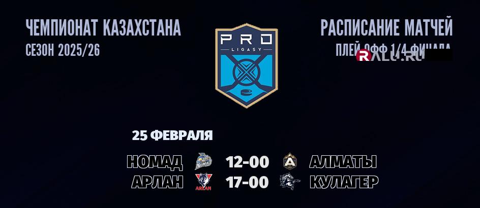 25 февраля 2026 года пройдут две встречи в рамках ПЛЕЙ-ОФФ чемпионата Казахстана