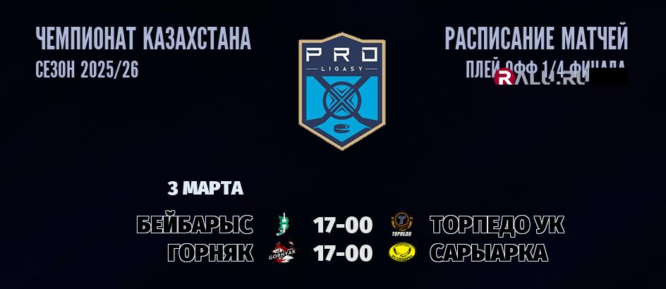 В 17-00 «Бейбарыс» проведет домашний матч с ХК «Торпедо УК». В прошлой встрече между командой Бейбарыс и командой Торпедо УК, которая состоялась 1 марта 2026 года - победу в основное время со счетом 4:2 одержала команда Торпедо УК. На 2 марта в турнирной таблице чемпионата Казахстана Бейбарыс занимает 13-е место, а Торпедо УК занимает 3-е место .