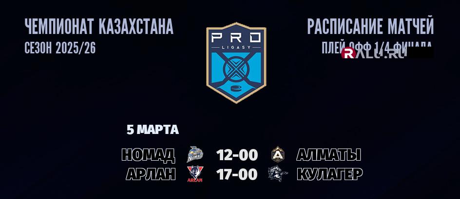 В 17-00 «Арлан» проведет домашний матч с ХК «Кулагер». В прошлой встрече между командой Арлан и командой Кулагер, которая состоялась 5 марта 2026 года - победу в овертайме со счетом 3:2 одержала команда Кулагер. На 6 марта в турнирной таблице чемпионата Казахстана Арлан занимает 1-е место, а Кулагер занимает 8-е место .