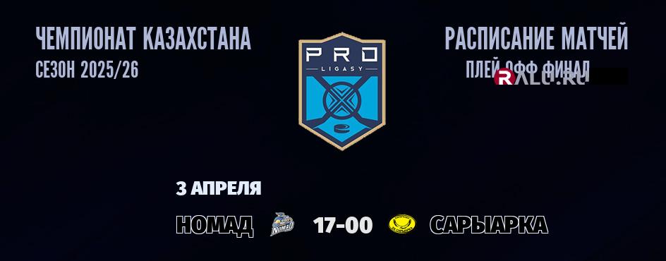 В 17-00 ХК «Номад» встретится на своем льду с ХК «Сарыарка». В прошлой встрече между командой Номад и командой Сарыарка, которая состоялась 3 апреля 2026 года - победу в основное время со счетом 5:2 одержала команда Номад. На данный момент в турнирной таблице чемпионата Казахстана Номад занимает 2-е место, а Сарыарка занимает 4-е место .