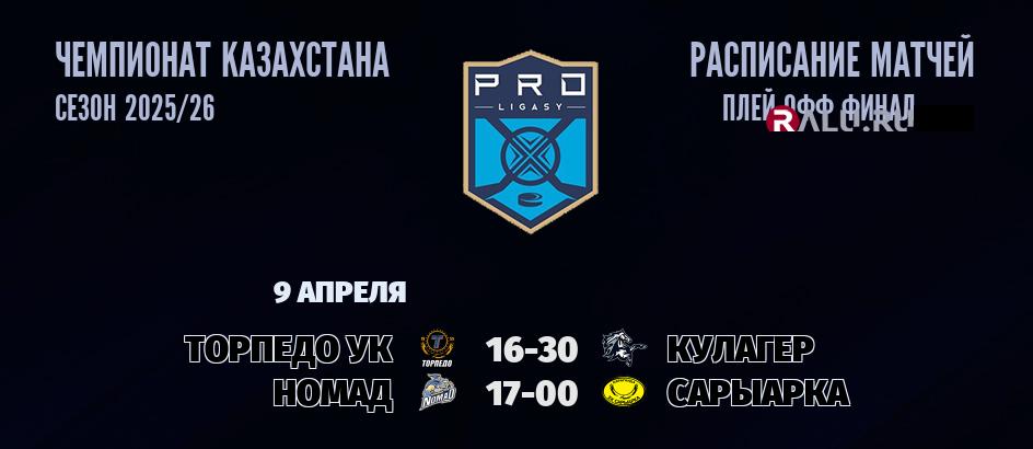 9 апреля 2026 года пройдут две встречи в рамках ПЛЕЙ-ОФФ чемпионата Казахстана