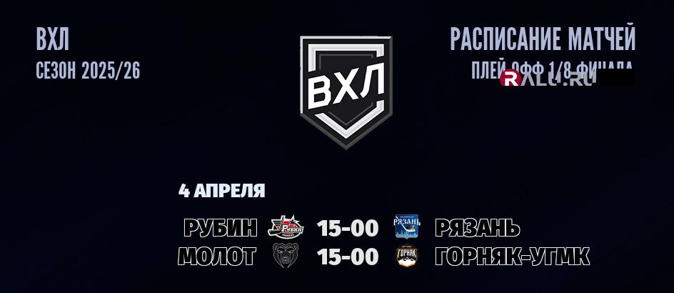 4 апреля 2026 года пройдут две встречи в рамках ПЛЕЙ-ОФФ чемпионата ВХЛ