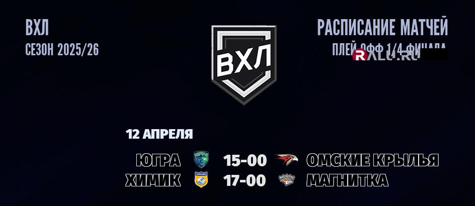 12 апреля 2026 года пройдут две встречи в рамках ПЛЕЙ-ОФФ чемпионата ВХЛ