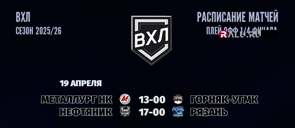 19 апреля 2026 года пройдут две встречи в рамках ПЛЕЙ-ОФФ чемпионата ВХЛ